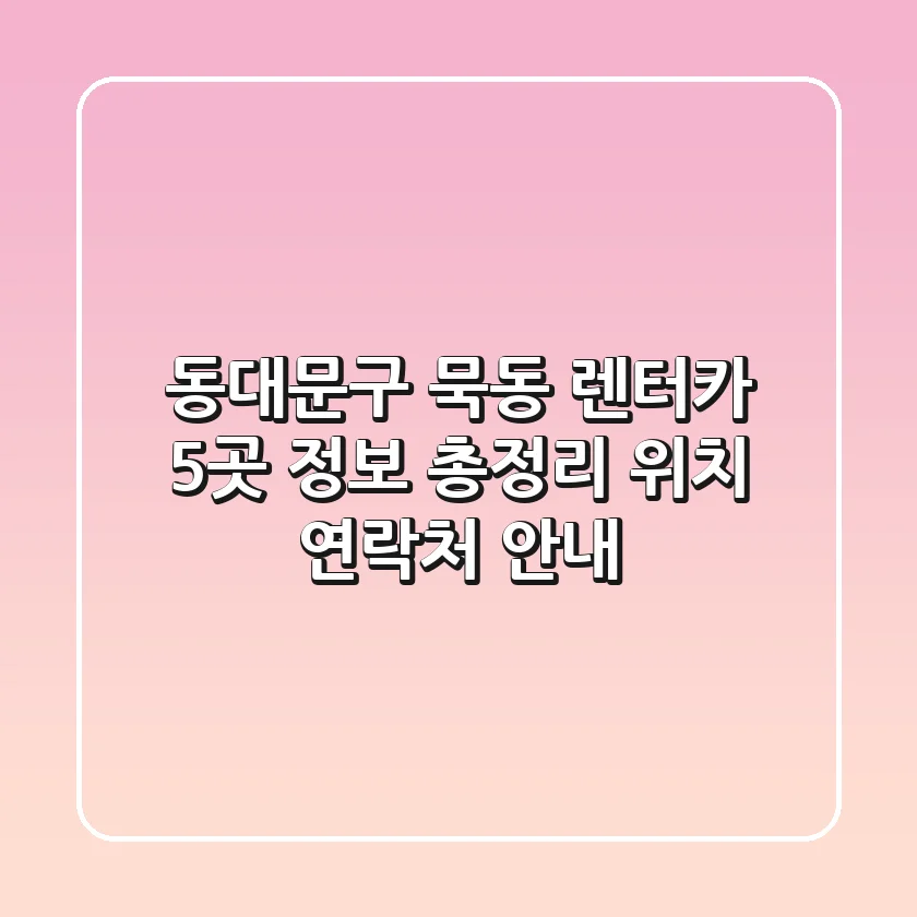 서울 동대문구 묵동 지역에서 편리하게 이용할 수 있는 렌터카 업체를 찾고 계신가요? 급하게 차량이 필요하거나, 주말 나들이, 출장 등 다양한 목적으로 렌터카 서비스를 이용하려는 분들을 위해, 묵동 인근의 주요 렌터카 업체 5곳의 기본 정보를 객관적으로 정리해 드립니다. 각 업체의 위치, 연락처 등 필수 정보를 바탕으로 합리적인 렌터카 업체 정보를 탐색하는 데 도움을 드리겠습니다.
